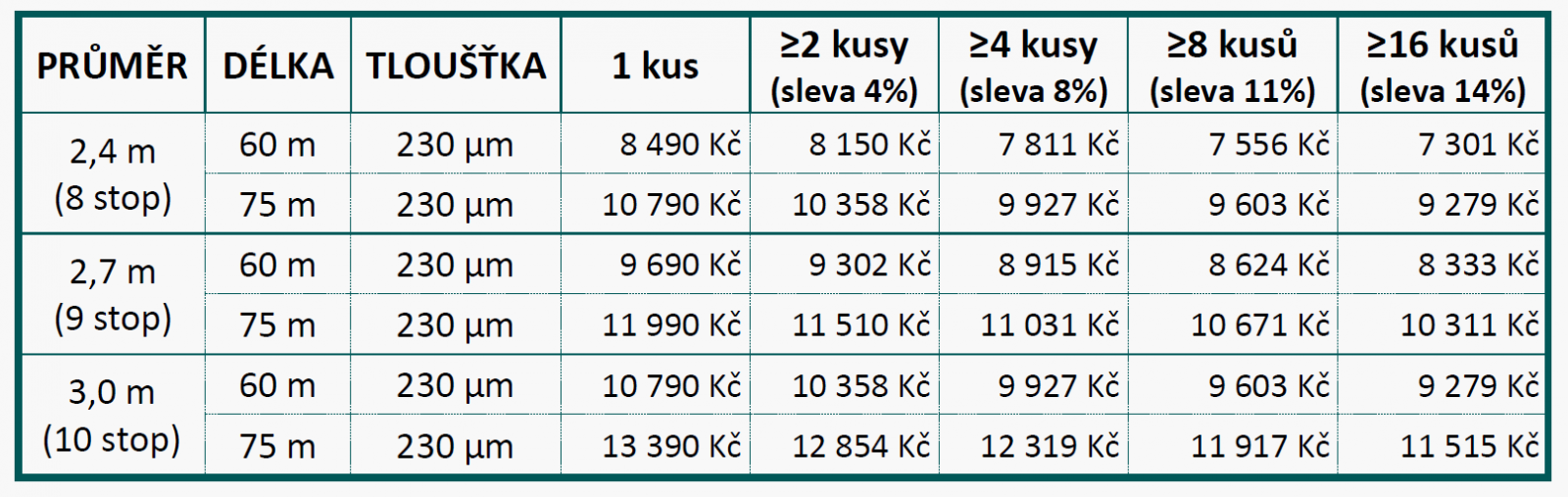 Množstevní sleva je poskytnuta také pro kombinaci různých velikostí vaků.